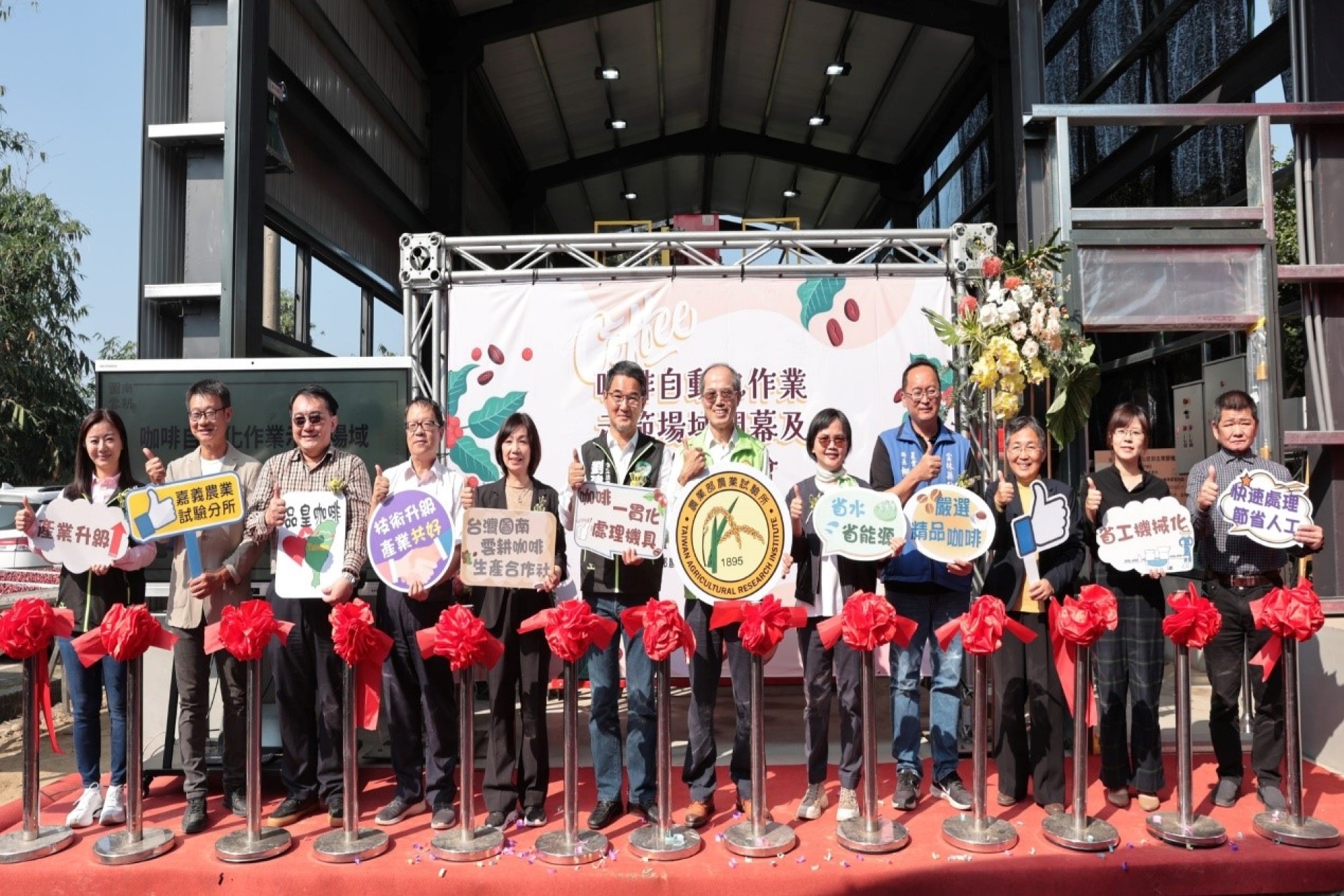 ►圖 1. 2023年12月15日咖啡自動化作業示範場域開幕及示範觀摩會