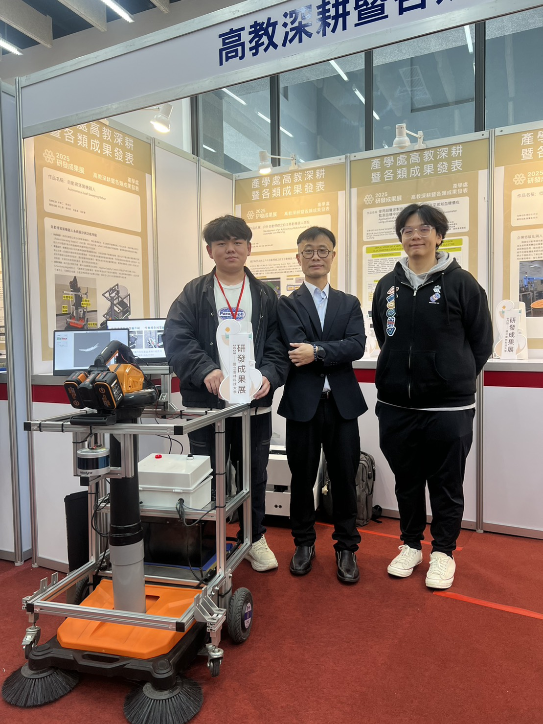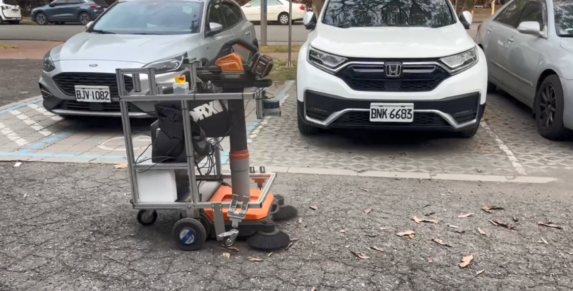 近本研究開發之自主式掃落葉機器人整合環境感知、自主導航與智慧清掃三大核心功能,目標實現於戶外環境的高效率、低人力化清掃作業。系統以 ROS2 為主架構,搭配 3D LiDAR 執行環境建模、定位導航與動態障礙物偵測,使機器人能在校園、公園與停車場等半結構化場域中,進行自適應路徑規劃與穩定移動。以自適應穩定性控制與路徑平滑化演算法,系統可即時修正運動偏差並提升地形適應性,使機器人在斜坡、碎石地面或濕滑環境中仍能保持穩定工作。